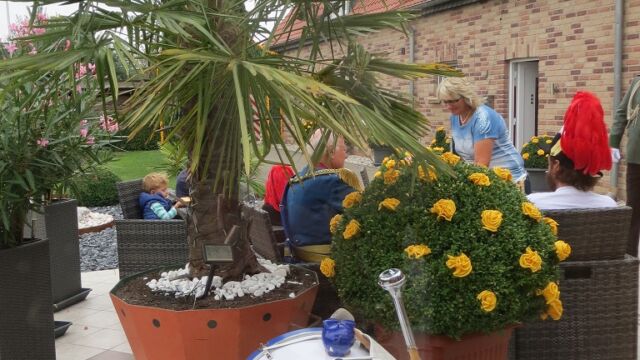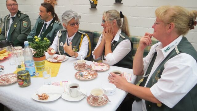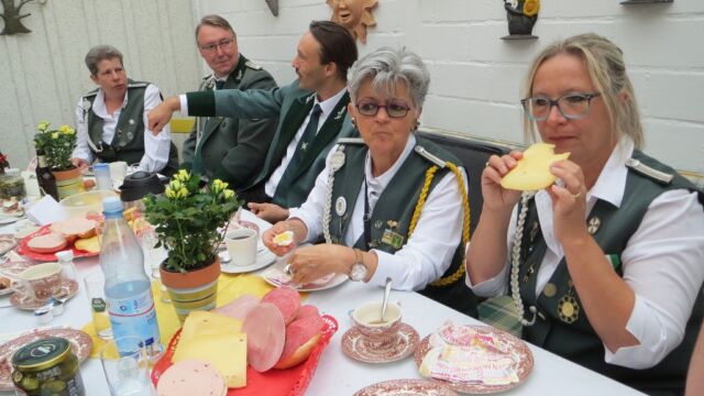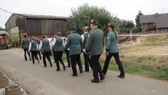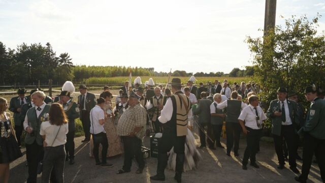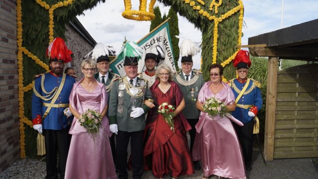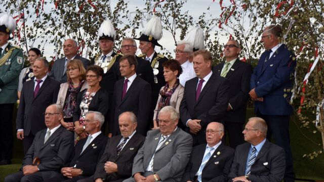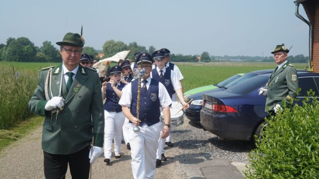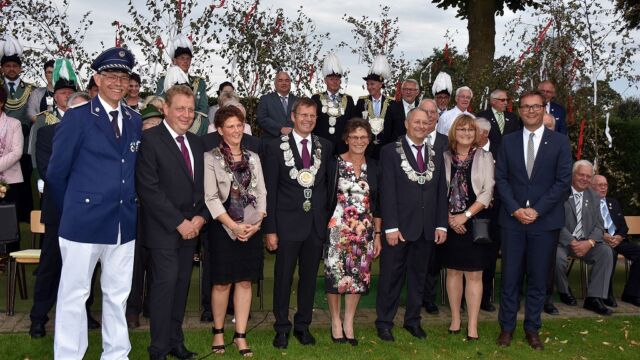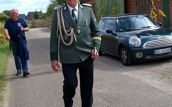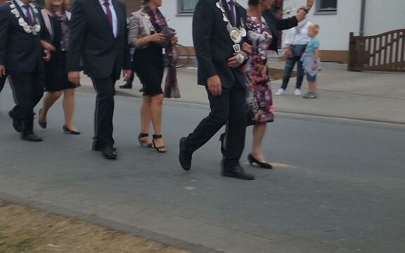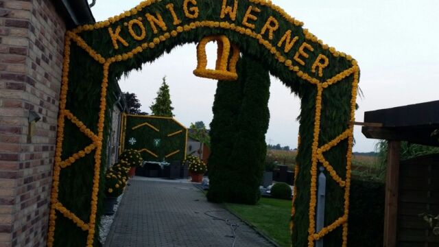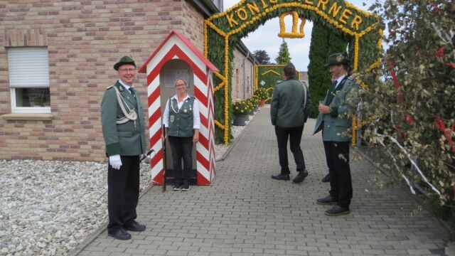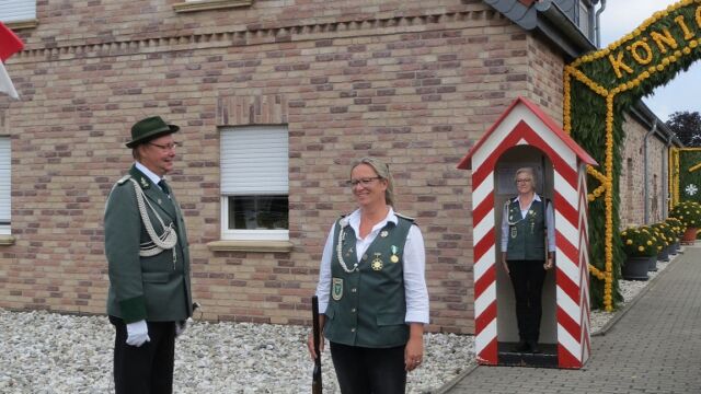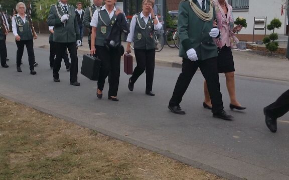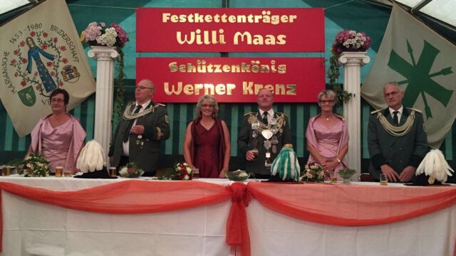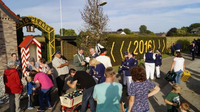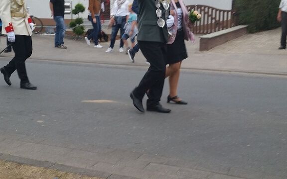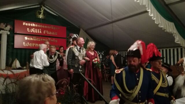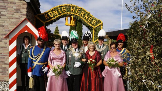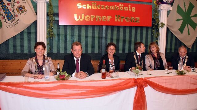 Am Samstag war der Tag unseres Königs Werner Krenz und seiner Ehefrau Anita, die zusammen mit den Ministern Franz-Gerd Fortmann mit Ehefrau Rita und Theo Prangs mit Partnerin Ursula Pulman um 9 Uhr vom Spielmannszug Blau-Weiß Hartefeld traditionell „geweckt“. Während der Spielmannszug zusammen mit dem Königsadjutanten Jens Krenz noch einige „Weckstationen“ vor der Brust hatte wurde das Königshaus den ganzen Tag von der Ehrengarde der Bruderschaft gut bewacht. Nachdem die geladenen Vereine um 17.30 Uhr erneut auf dem Sportplatz angetreten waren ging es geschlossen zum Königshaus um die Hofstaaten abzuholen. Zuvor lud das Königspaar allerdings alle Anwesenden zu einem kleinen Umtrunk ein. Auch an diesem Tag fand der große Festakt auf dem Sportplatz statt. Der Festumzug durch Vernum endete erneut im Festzelt zum großen „Königsgalaball“. Auch an diesem Tag hatten die Vernumer bestes Festwetter.