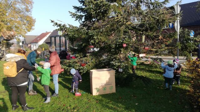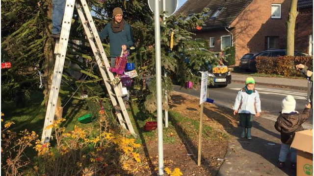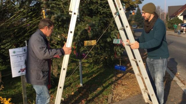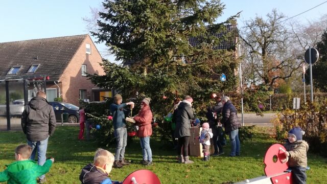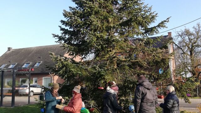 Die Weihnachtszeit steht vor der Tür und auf der Vernumer Brunnenwiese wartete ein stattlicher Tannenbaum auf seine weihnachtliche Dekoration. Am 30. November 2019 trafen sich neben vielen Mitgliedern der Marianischen Bruderschaft Vernum noch weitere Helfer aus dem Dorf um unseren Tannenbaum zu schmücken. Mit wärmenden Glühwein und Kakao, stärkenden Waffeln und Plätzchen wurden die zahlreichen Geschenkpäckchen dekorativ im Baum verteilt. Das Ergebnis war ein wundervoller Weihnachtsbaum, welcher uns, nicht nur in den Abendstunden wenn er hell erleuchtet ist, besinnlich und dekorativ durch die Weihnachtszeit begleiten wird. Vielen Dank an alle Helfer.